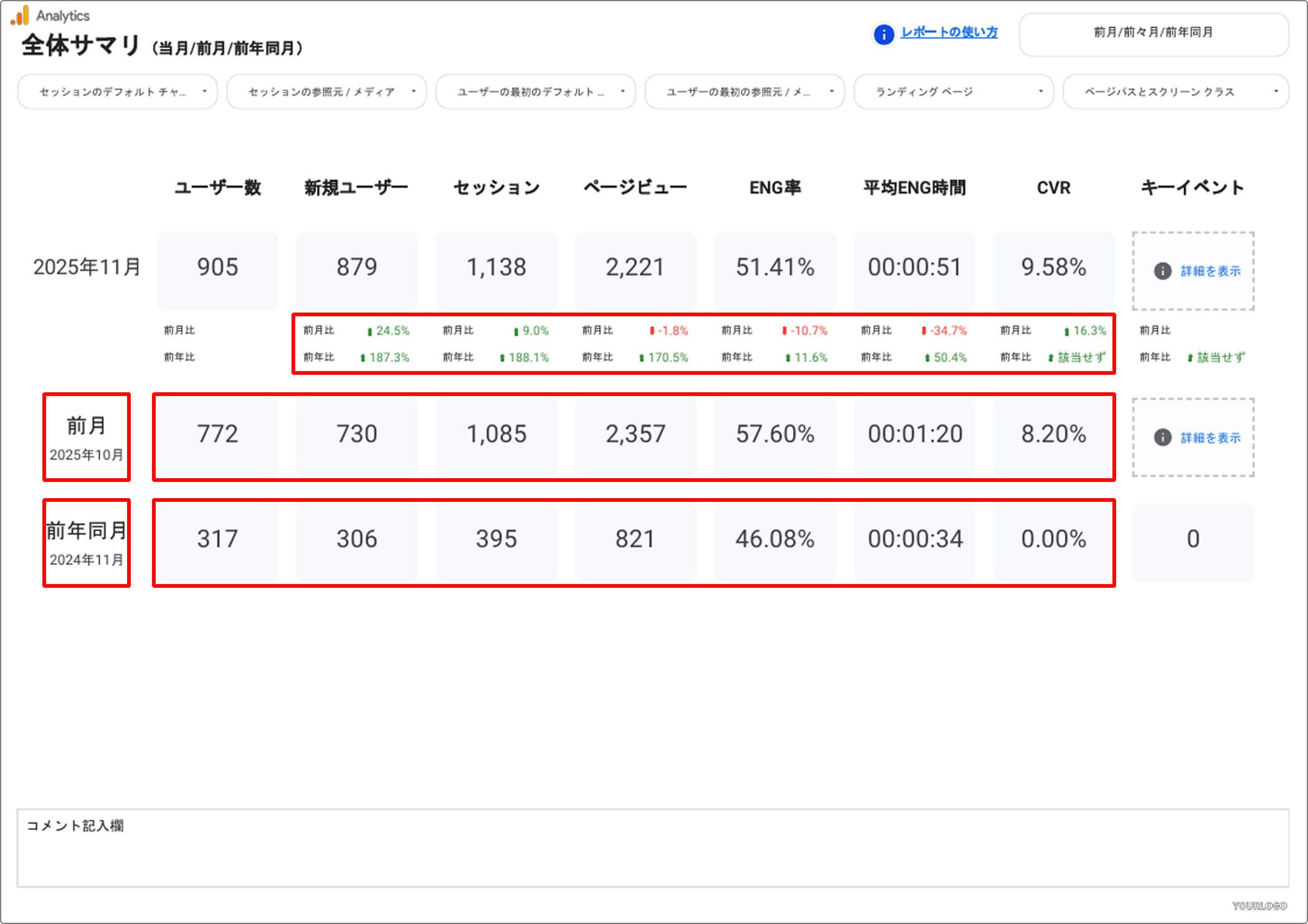 前年同月と比べると、集客数・サイトの利用状況ともに大きく成長しています。